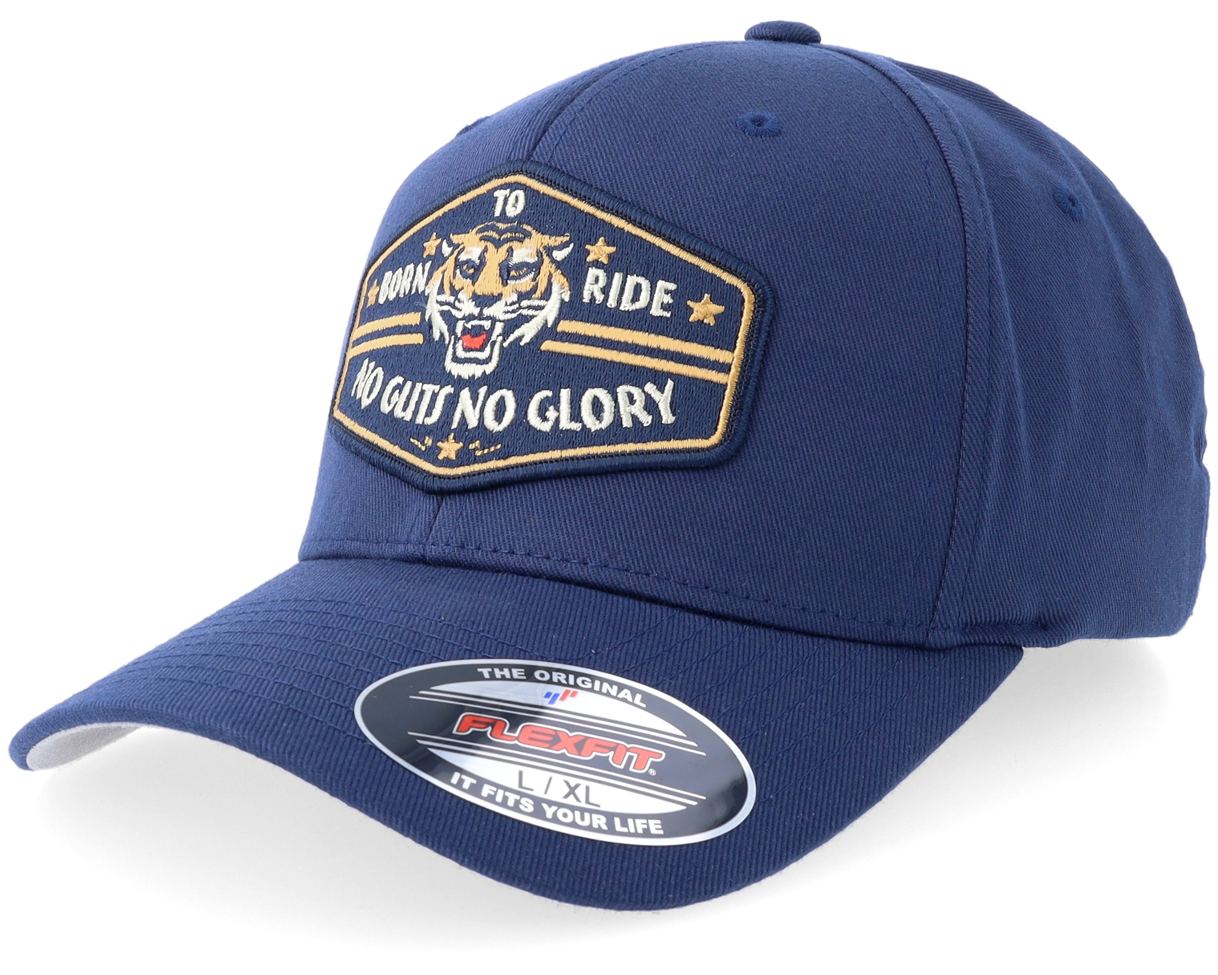 Born To Ride No Guts No Glory Tiger Navy Patch Navy Flexfit