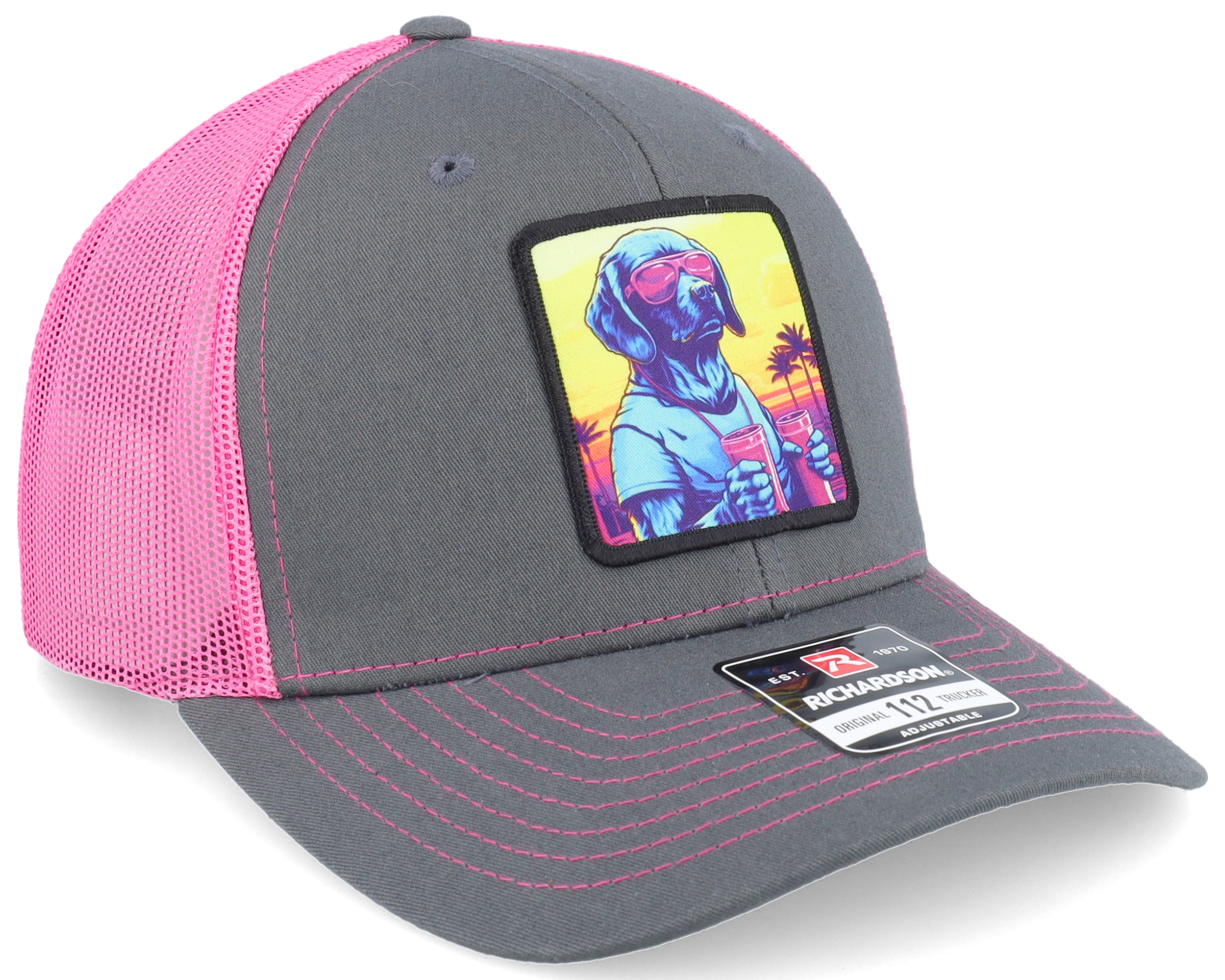 Party Dog Patch Charcoal/Neon Pink Trucker