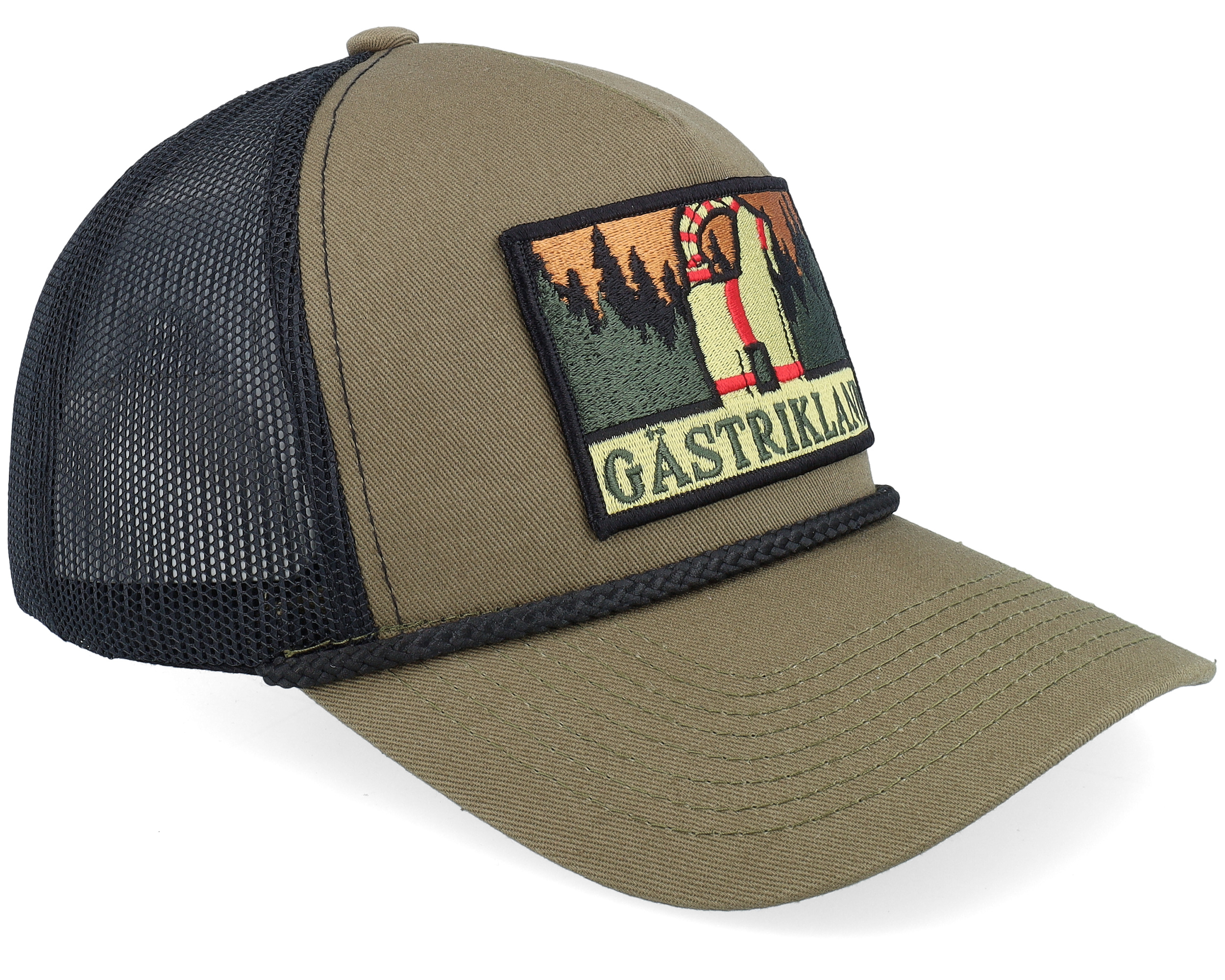 Swedish Gästrikland Landscape Rope Olive/Black A-frame Trucker